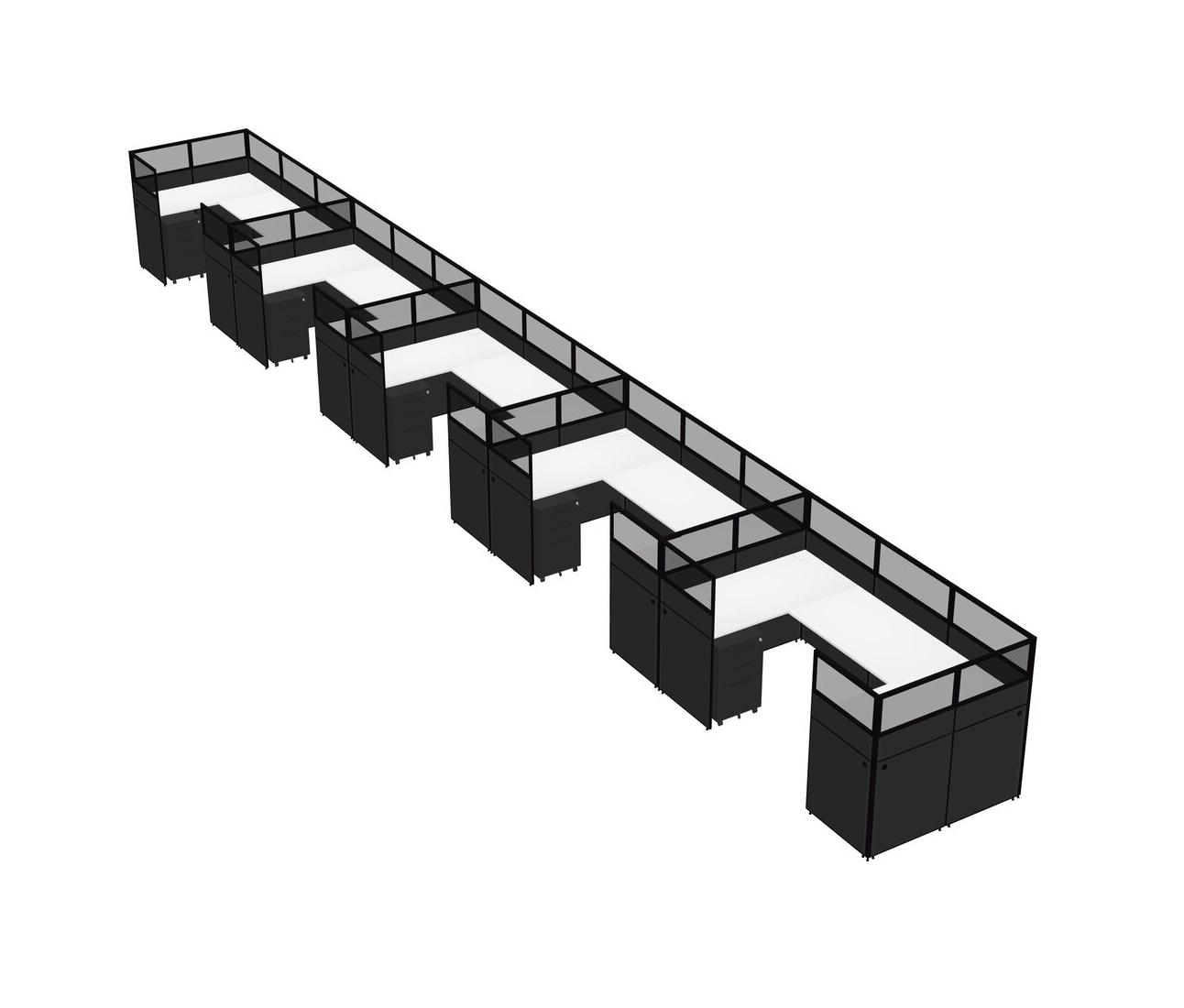 White U-shaped Panel System For 5 Person + Metal Mobile Drawers For 5 User(s)