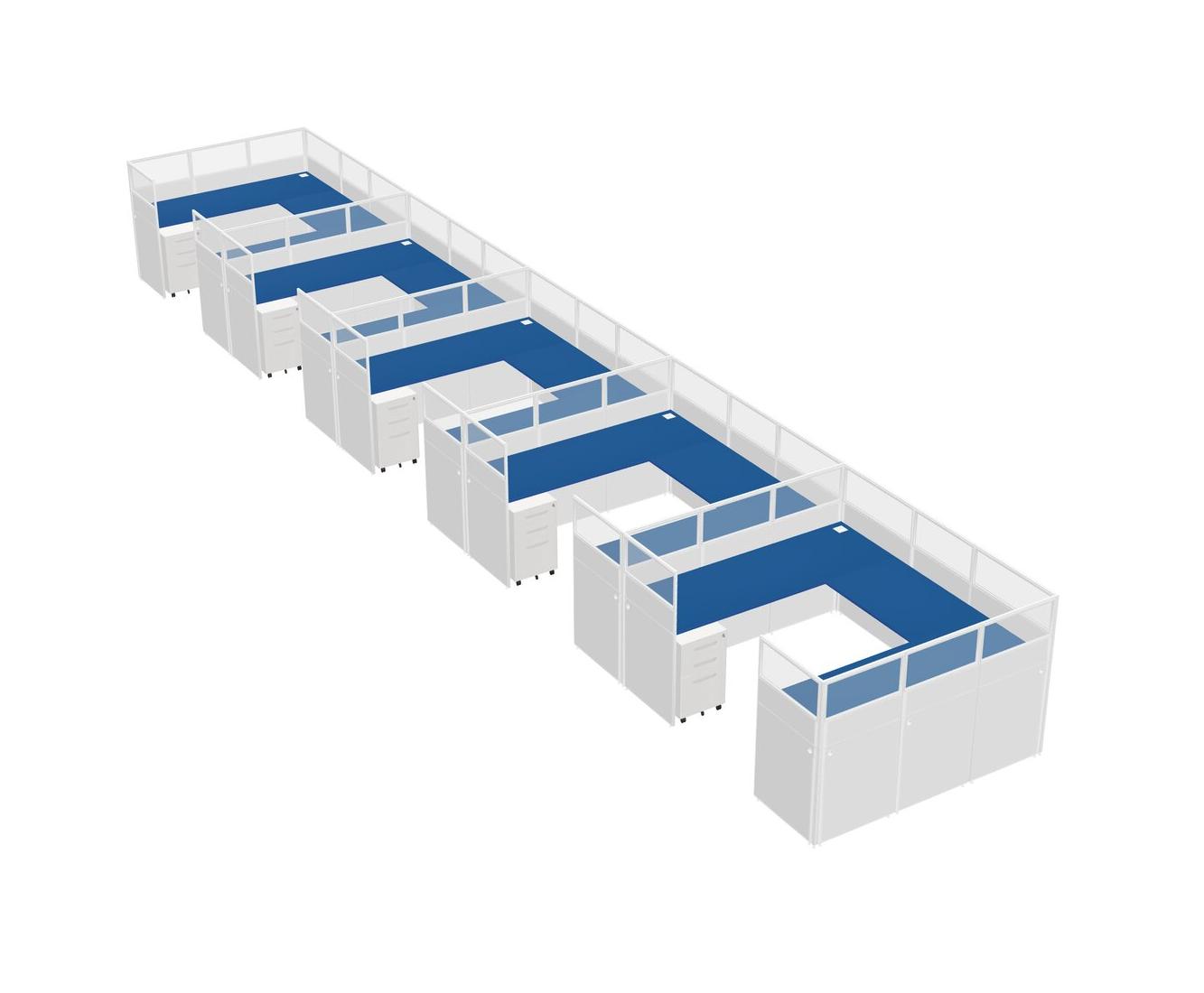 Prism Blue U-shaped Panel System For 5 Person + Metal Mobile Drawers For 5 User(s)