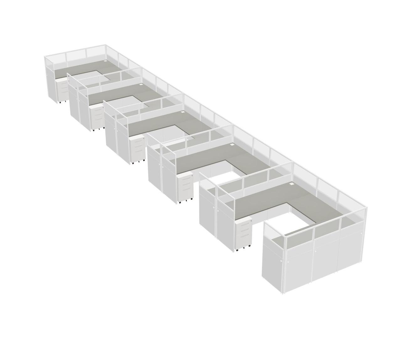 Grey Shadows U-shaped Panel System For 5 Person + Metal Mobile Drawers For 5 User(s)