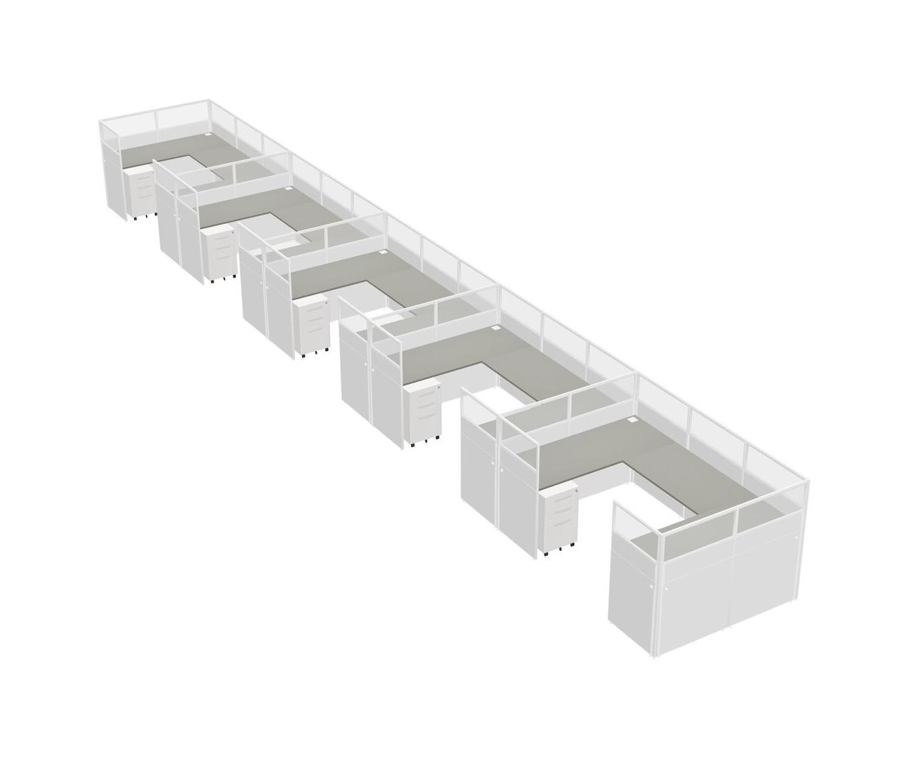 Grey Shadows U-shaped Panel System For 5 Person + Metal Mobile Drawers For 5 User(s)