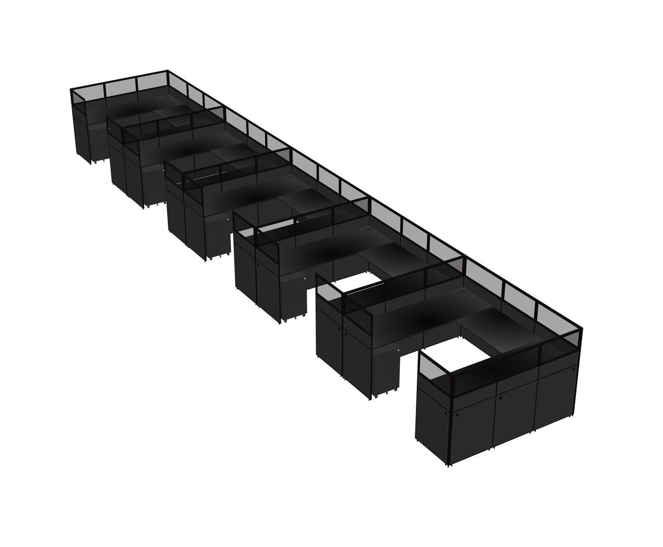 Black U-shaped Panel System For 5 Person + Metal Mobile Drawers For 5 User(s)