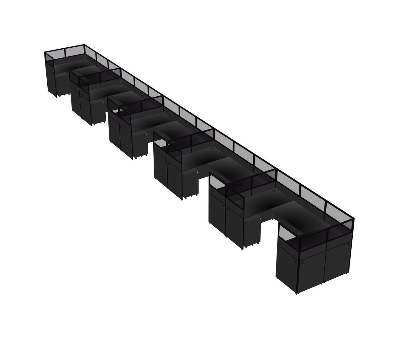 Black U-shaped Panel System For 5 Person + Metal Mobile Drawers For 5 User(s)