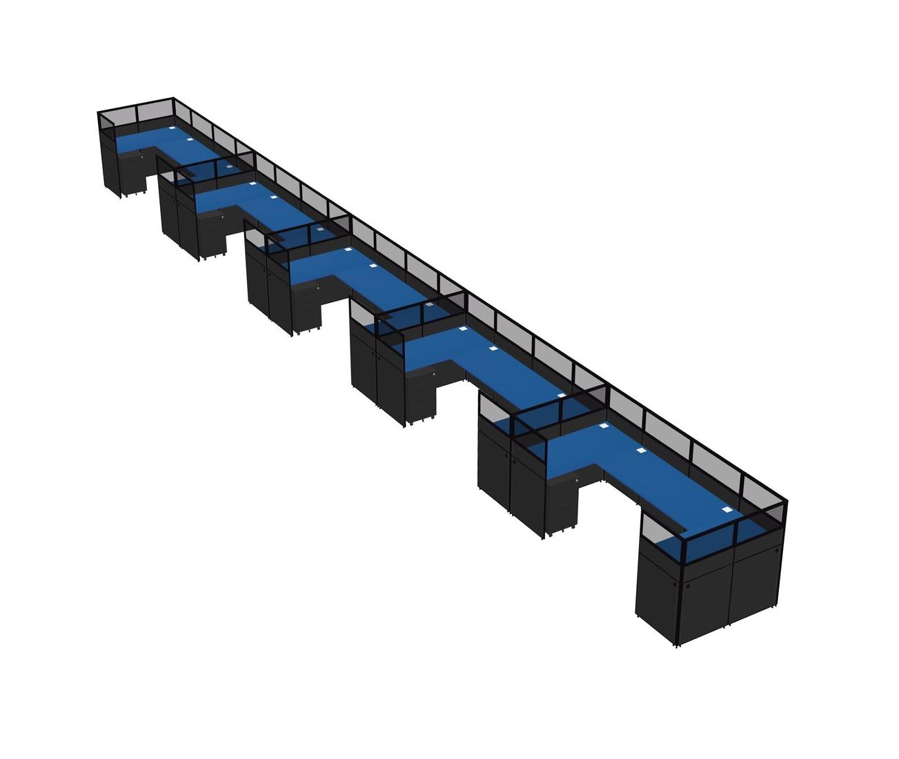 Prism Blue U-shaped Panel System For 5 Person + Metal Mobile Drawers For 5 User(s)