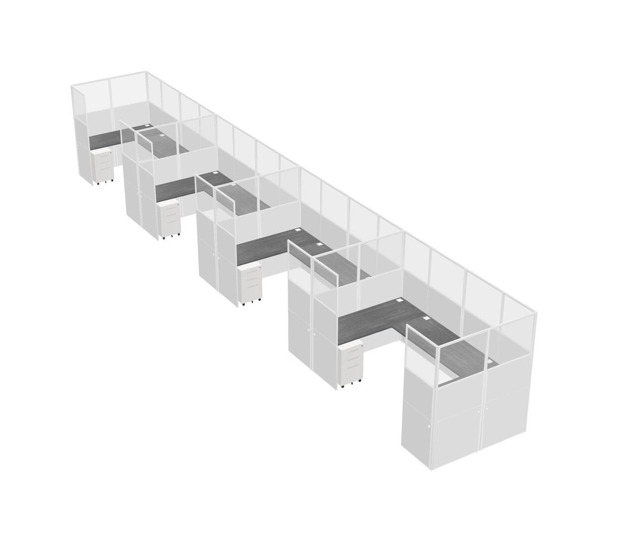 Grey U-shaped Panel System For 4 Person + Metal Mobile Drawers For 4 User(s)