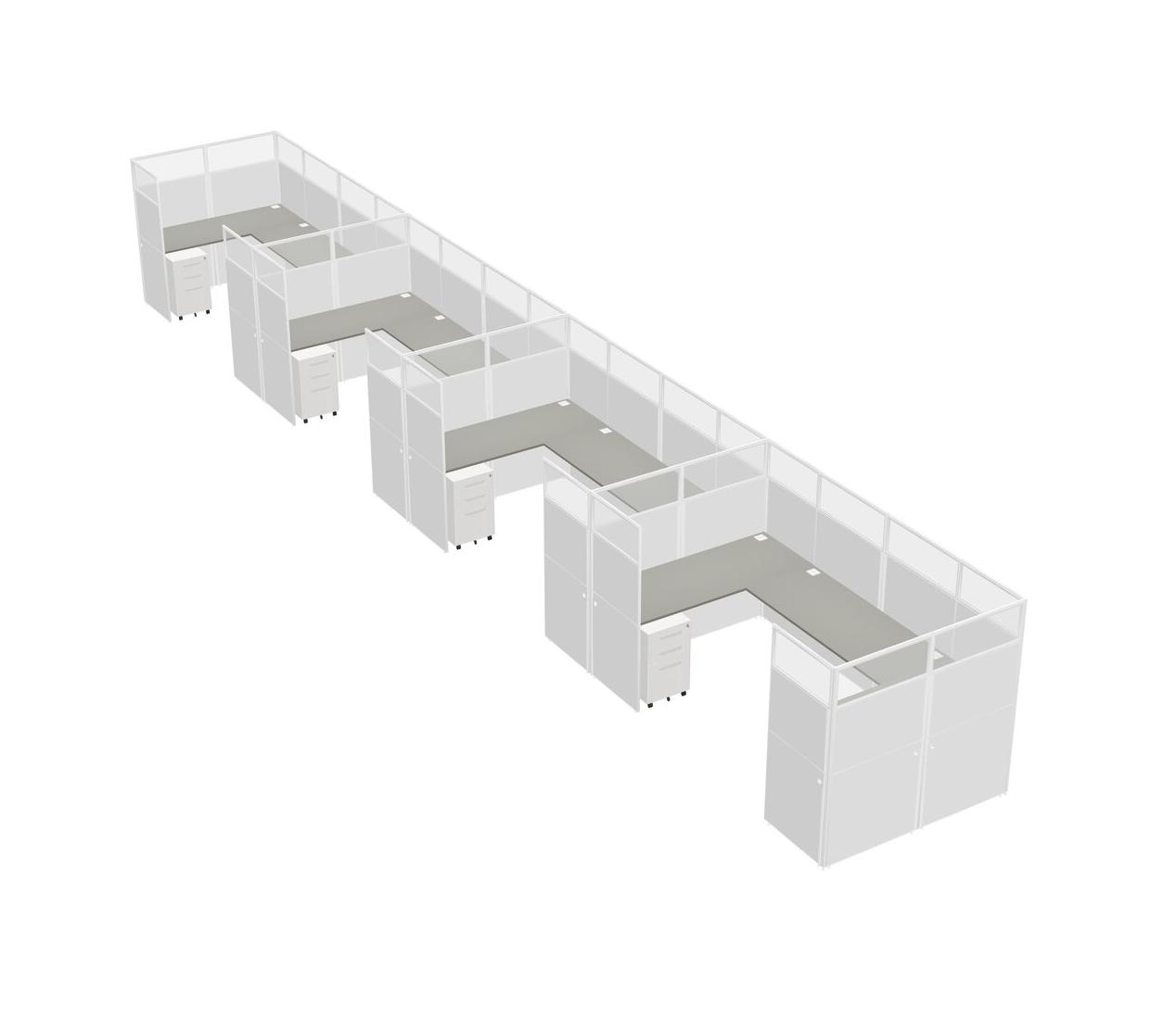 Grey Shadows U-shaped Panel System For 4 Person + Metal Mobile Drawers For 4 User(s)