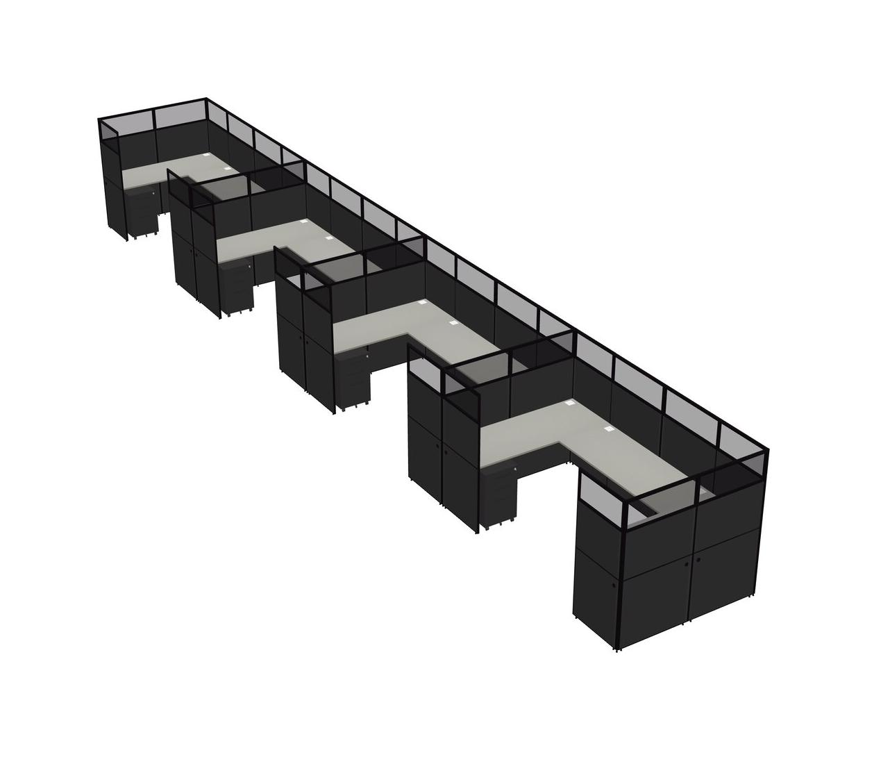 Grey Shadows U-shaped Panel System For 4 Person + Metal Mobile Drawers For 4 User(s)