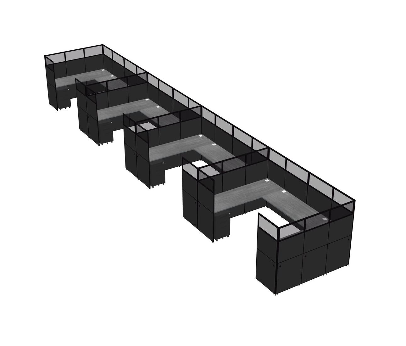 Grey U-shaped Panel System For 4 Person + Metal Mobile Drawers For 4 User(s)