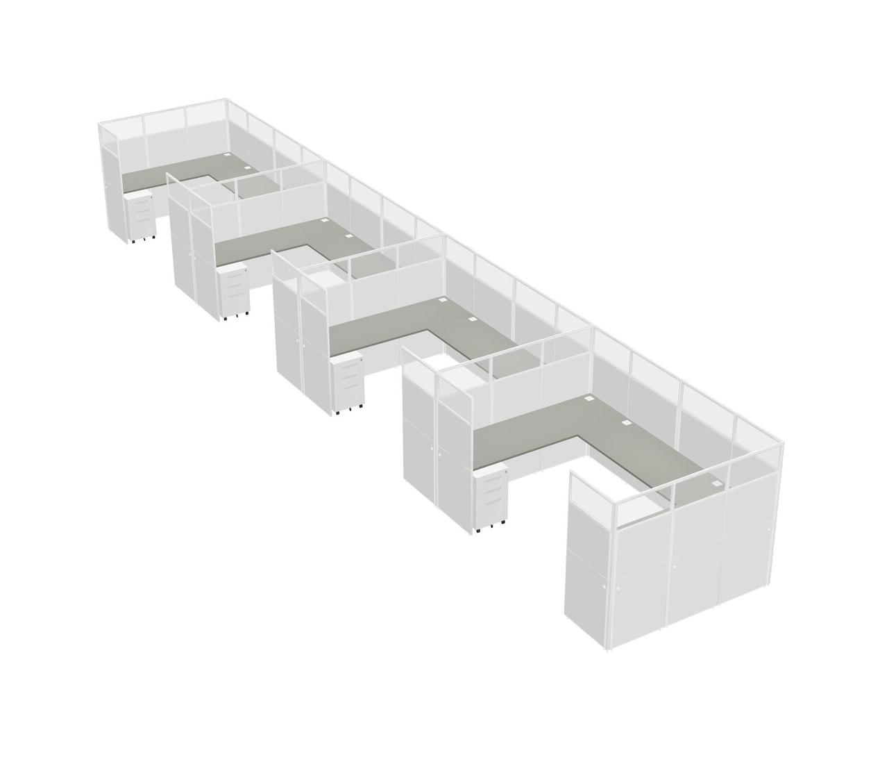 Grey Shadows U-shaped Panel System For 4 Person + Metal Mobile Drawers For 4 User(s)