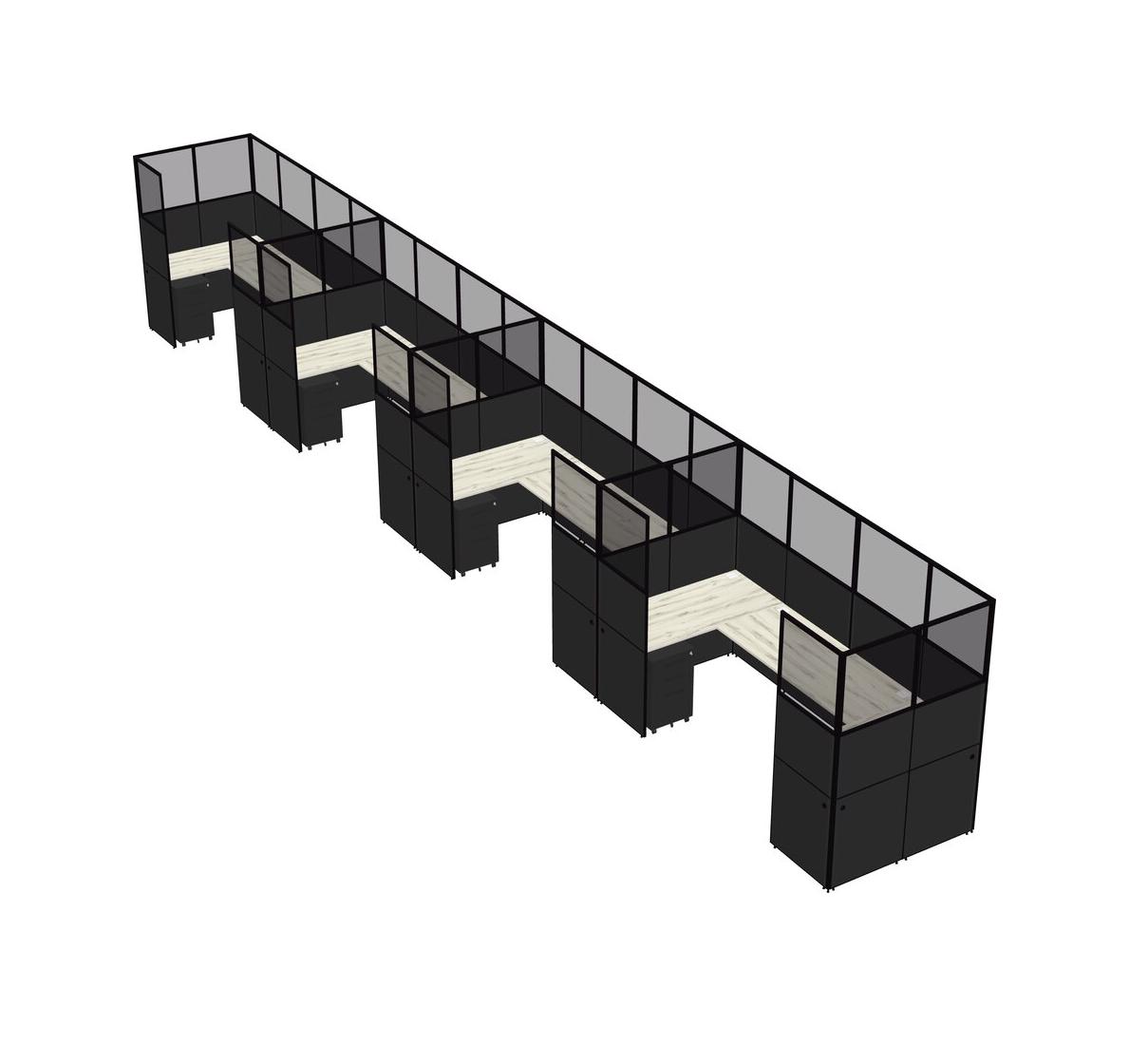 Heinne Holz U-shaped Panel System For 4 Person + Metal Mobile Drawers For 4 User(s)