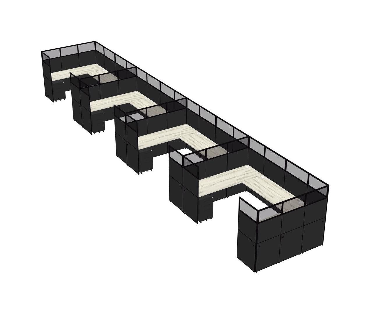 Heinne Holz U-shaped Panel System For 4 Person + Metal Mobile Drawers For 4 User(s)