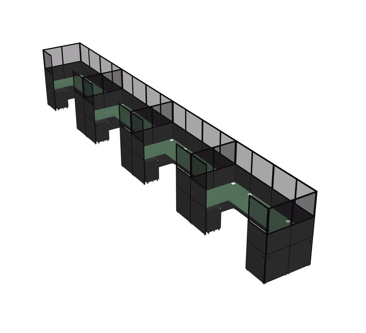 Green U-shaped Panel System For 4 Person + Metal Mobile Drawers For 4 User(s)
