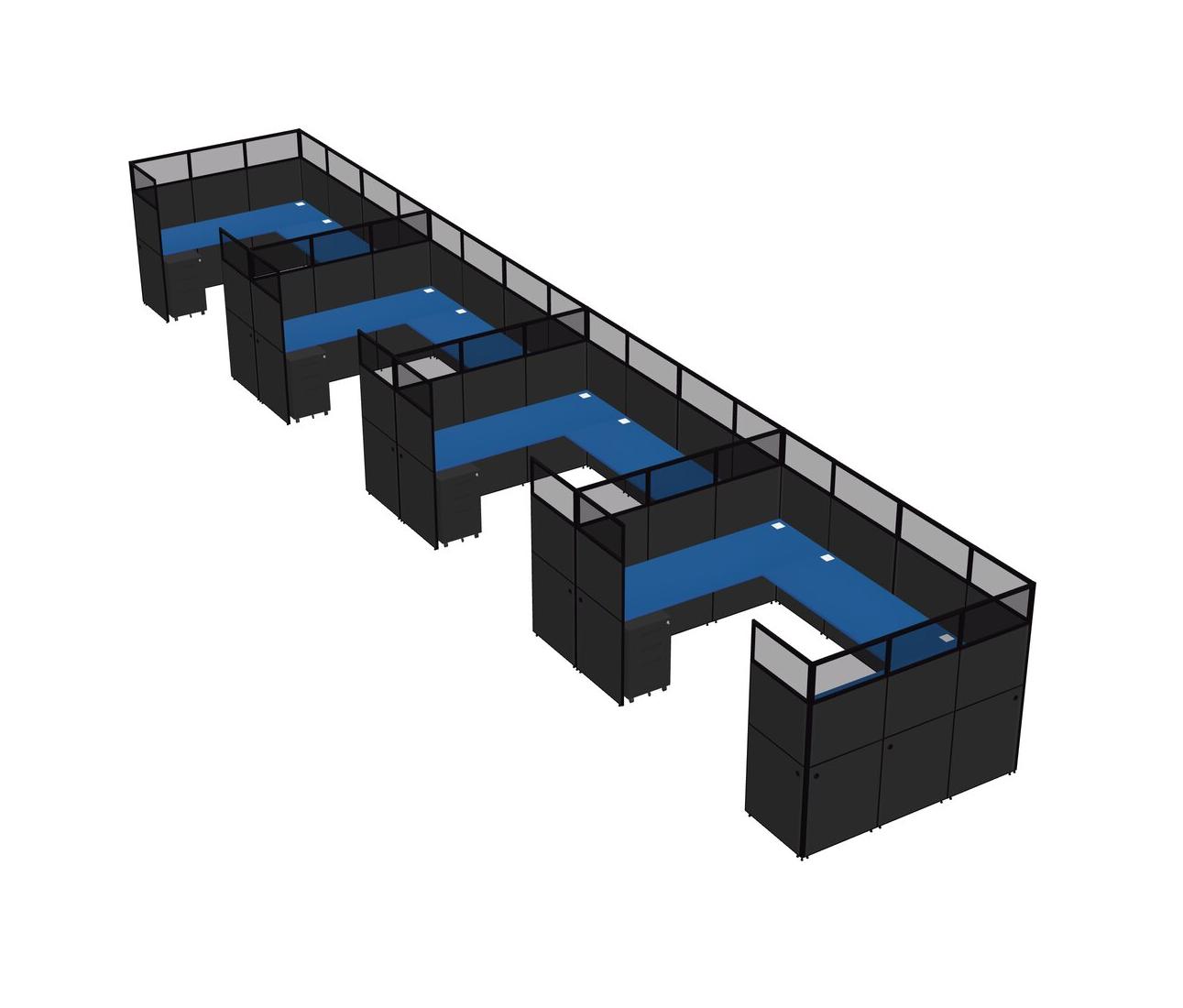 Prism Blue U-shaped Panel System For 4 Person + Metal Mobile Drawers For 4 User(s)