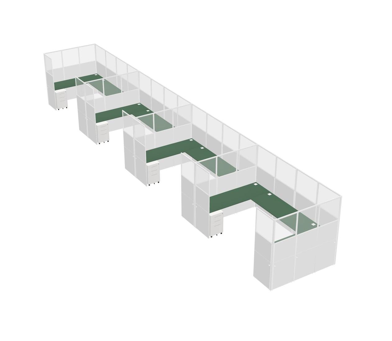 Green U-shaped Panel System For 4 Person + Metal Mobile Drawers For 4 User(s)