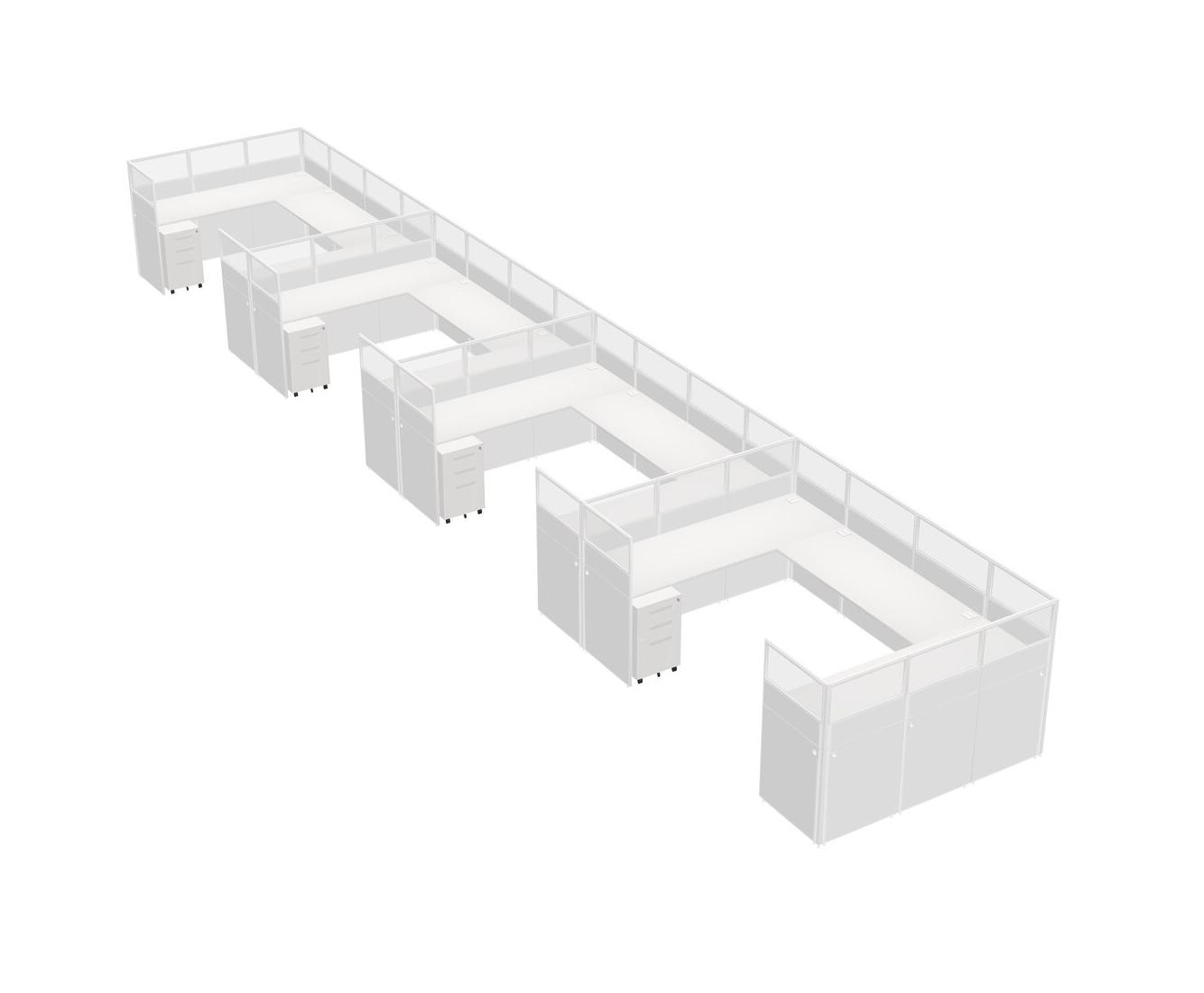 White U-shaped Panel System For 4 Person + Metal Mobile Drawers For 4 User(s)