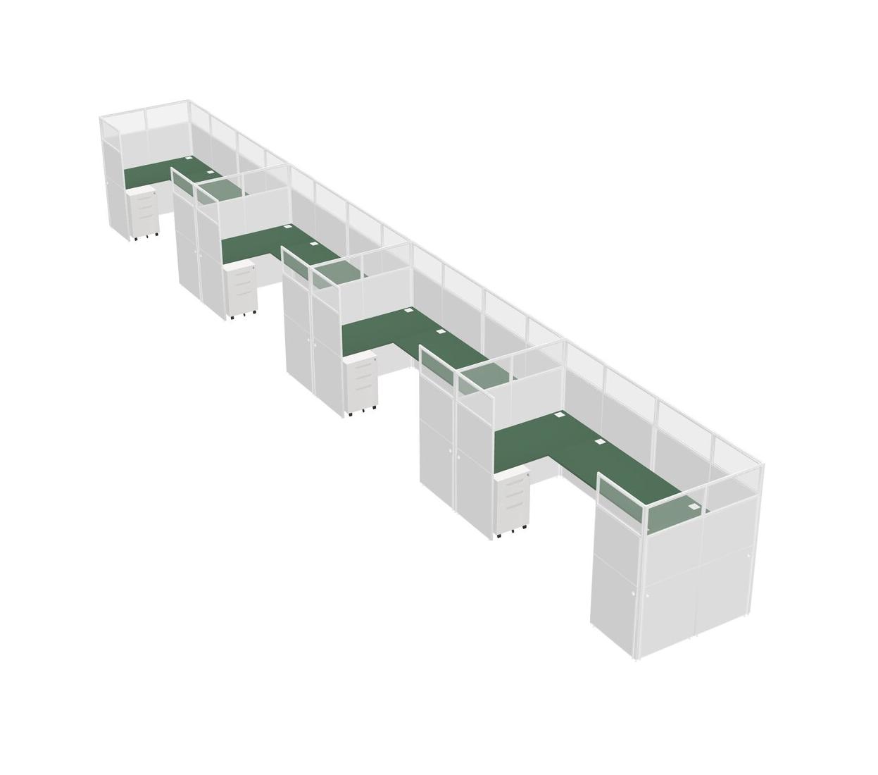 Green U-shaped Panel System For 4 Person + Metal Mobile Drawers For 4 User(s)