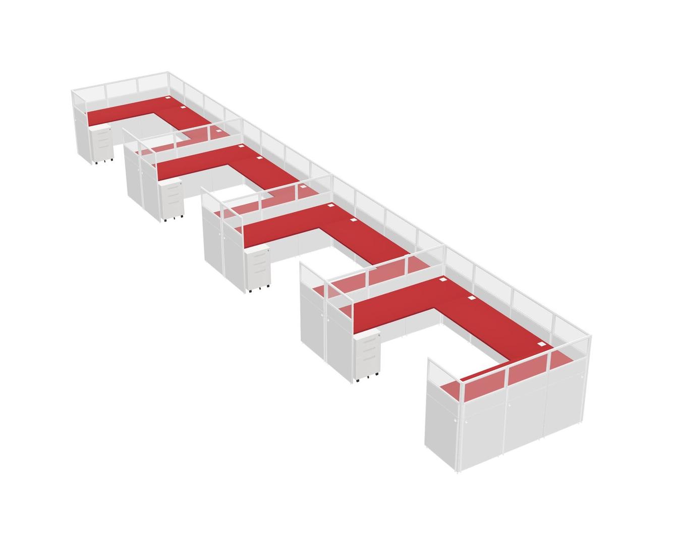 Prism Red U-shaped Panel System For 4 Person + Metal Mobile Drawers For 4 User(s)