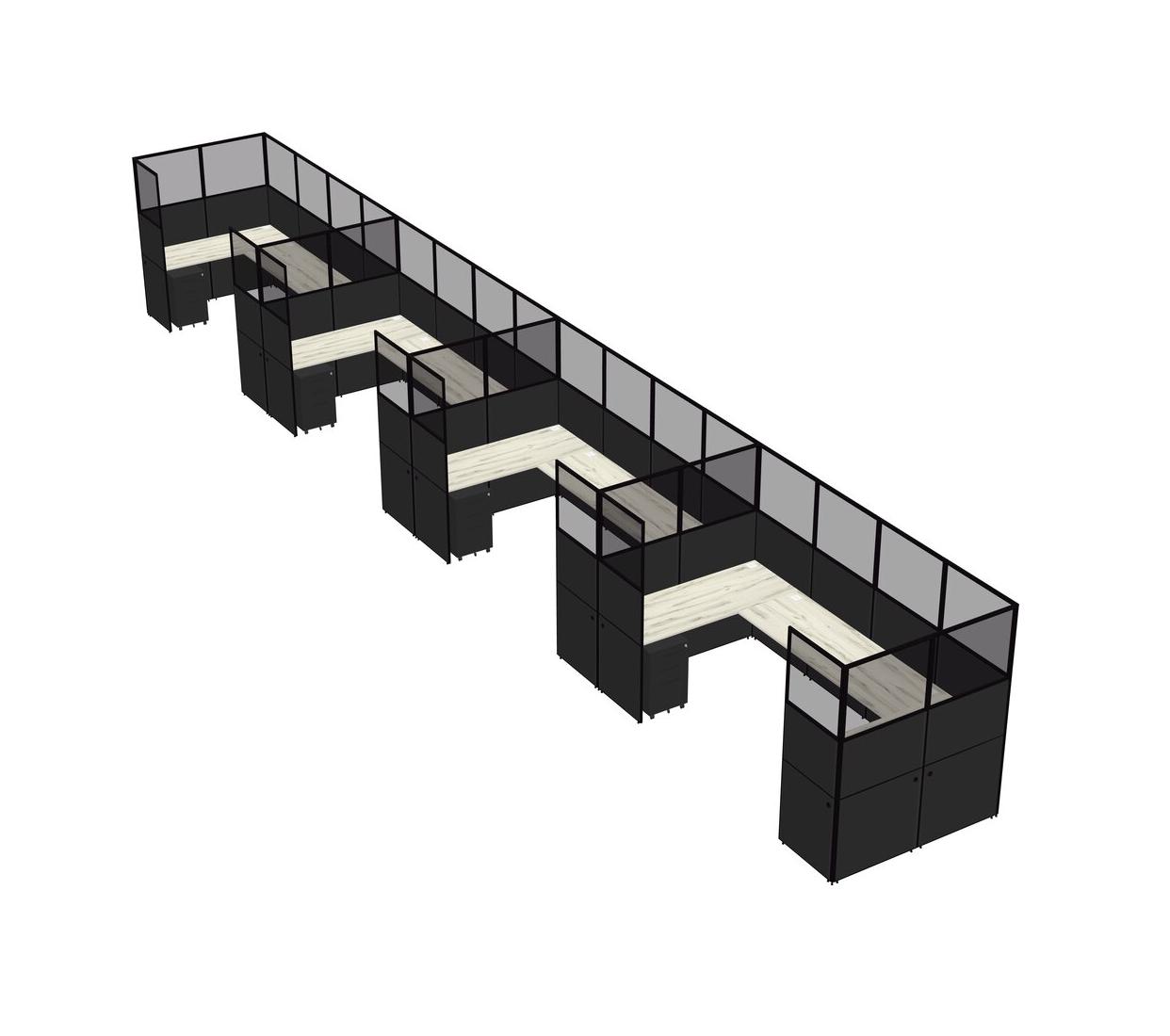 Heinne Holz U-shaped Panel System For 4 Person + Metal Mobile Drawers For 4 User(s)