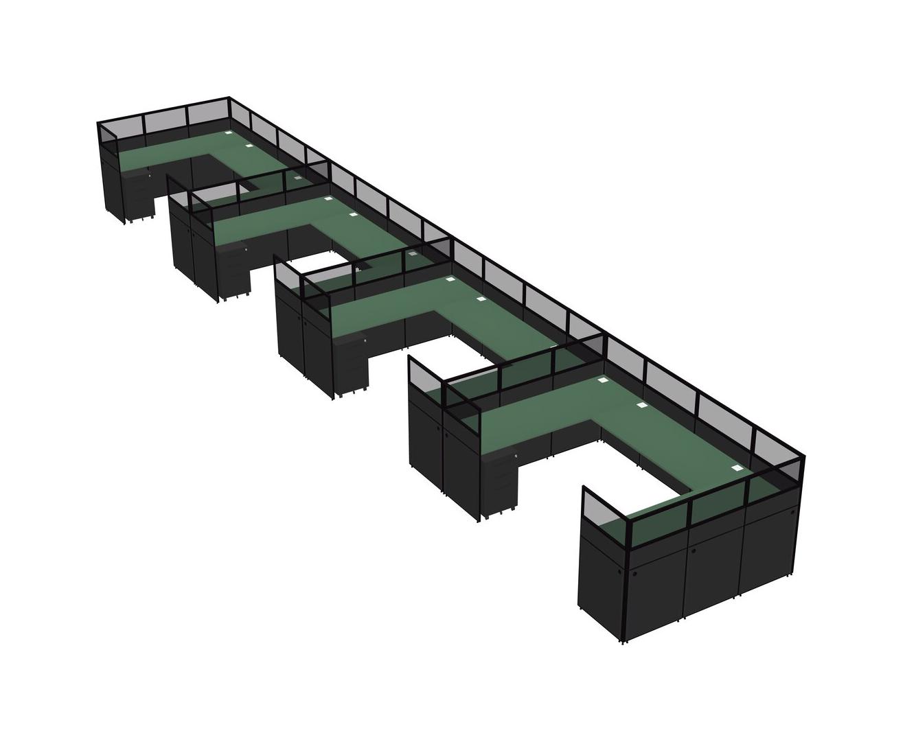 Green U-shaped Panel System For 4 Person + Metal Mobile Drawers For 4 User(s)