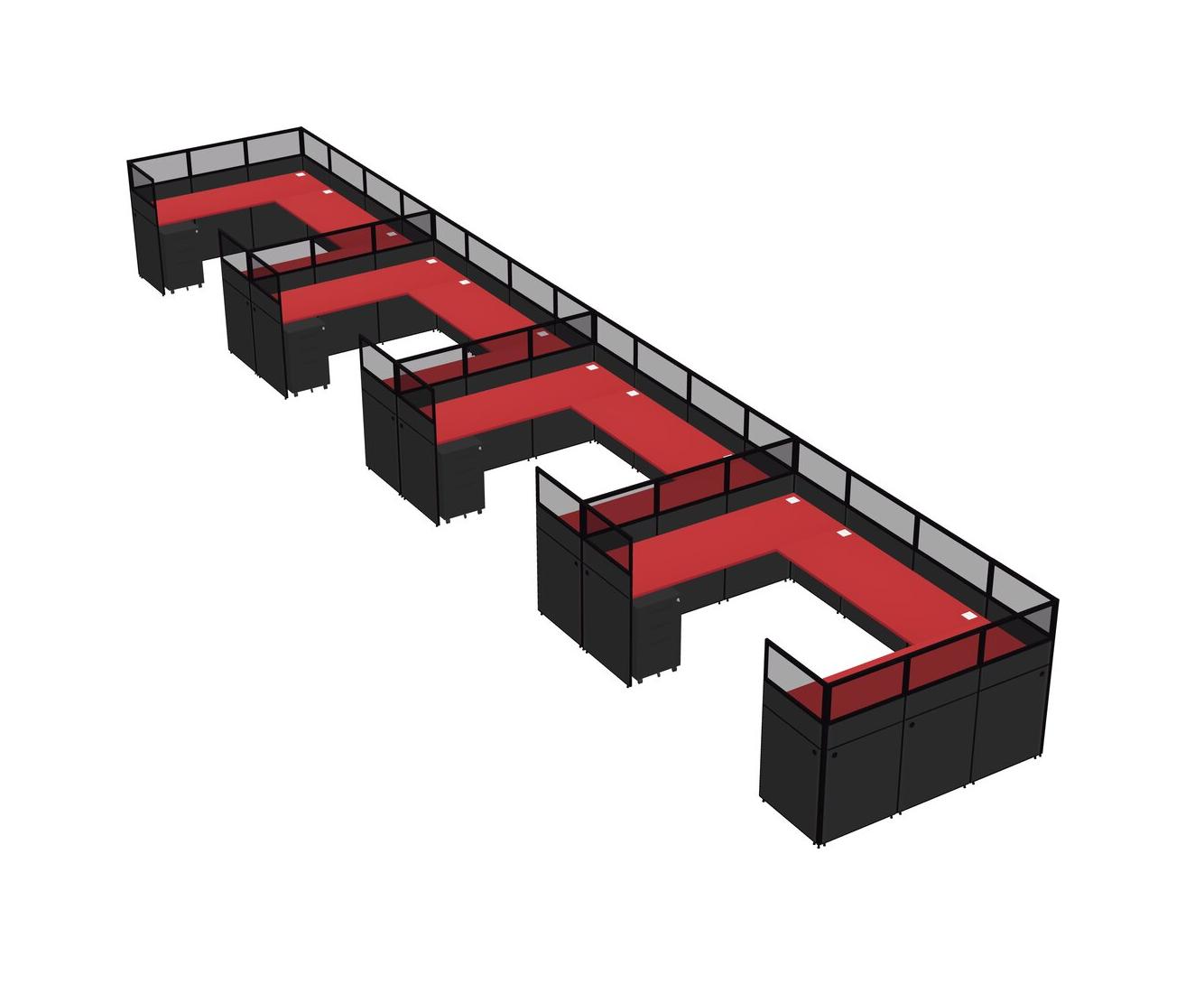 Prism Red U-shaped Panel System For 4 Person + Metal Mobile Drawers For 4 User(s)