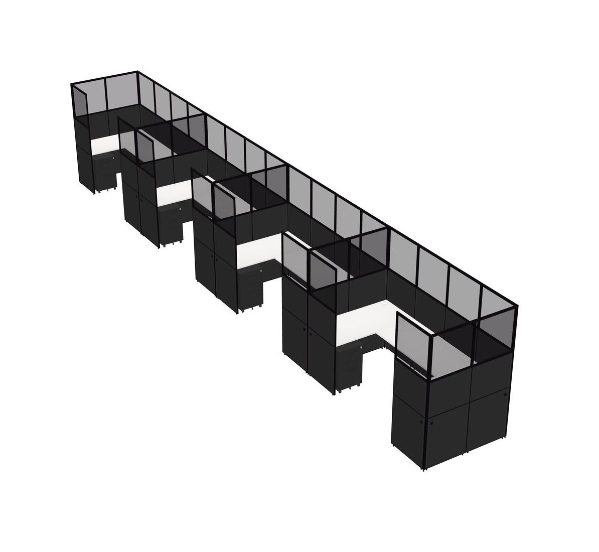 White U-shaped Panel System For 4 Person + Metal Mobile Drawers For 4 User(s)