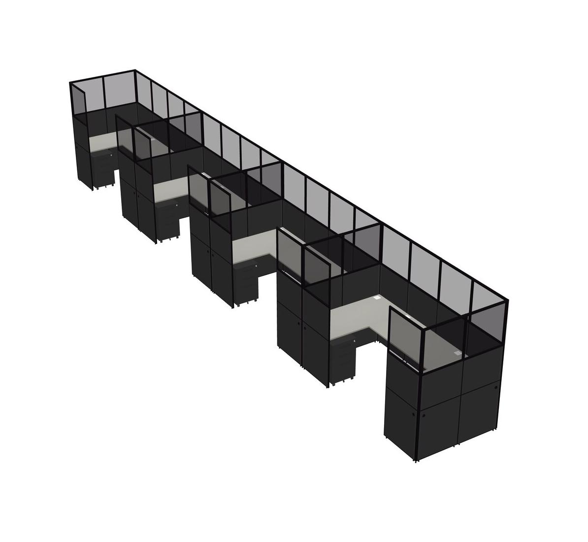 Grey Shadows U-shaped Panel System For 4 Person + Metal Mobile Drawers For 4 User(s)