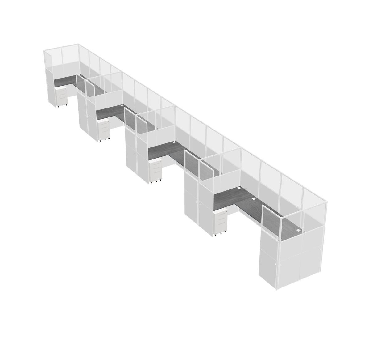 Grey U-shaped Panel System For 4 Person + Metal Mobile Drawers For 4 User(s)