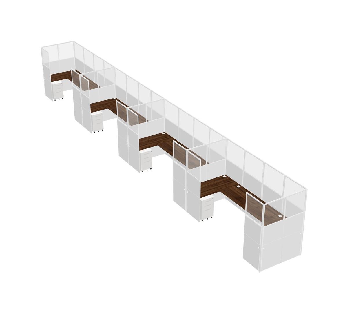 Columbia Walnut U-shaped Panel System For 4 Person + Metal Mobile Drawers For 4 User(s)
