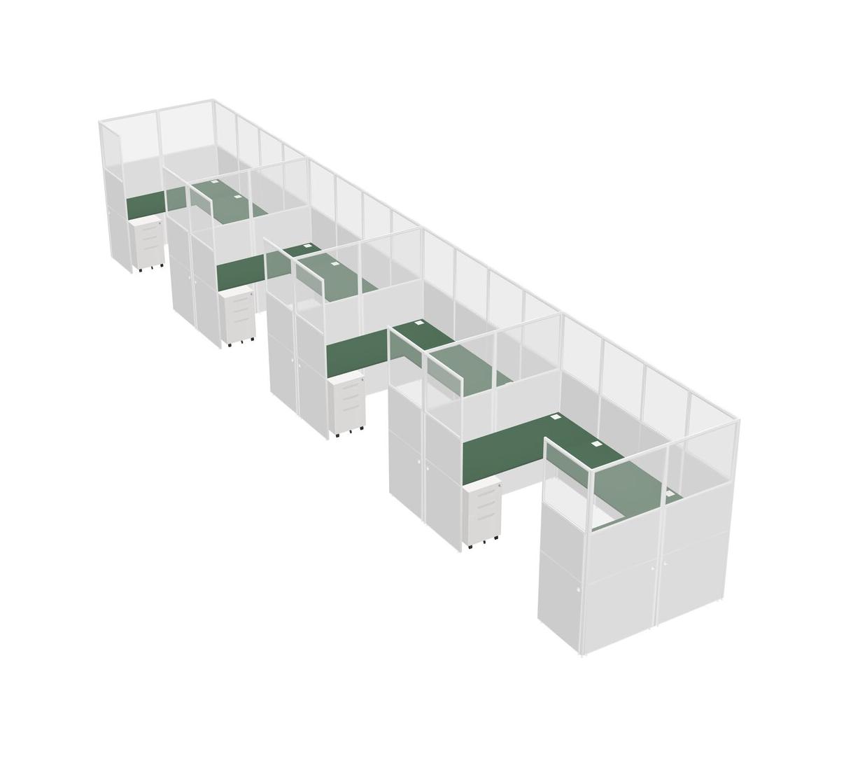 Green U-shaped Panel System For 4 Person + Metal Mobile Drawers For 4 User(s)