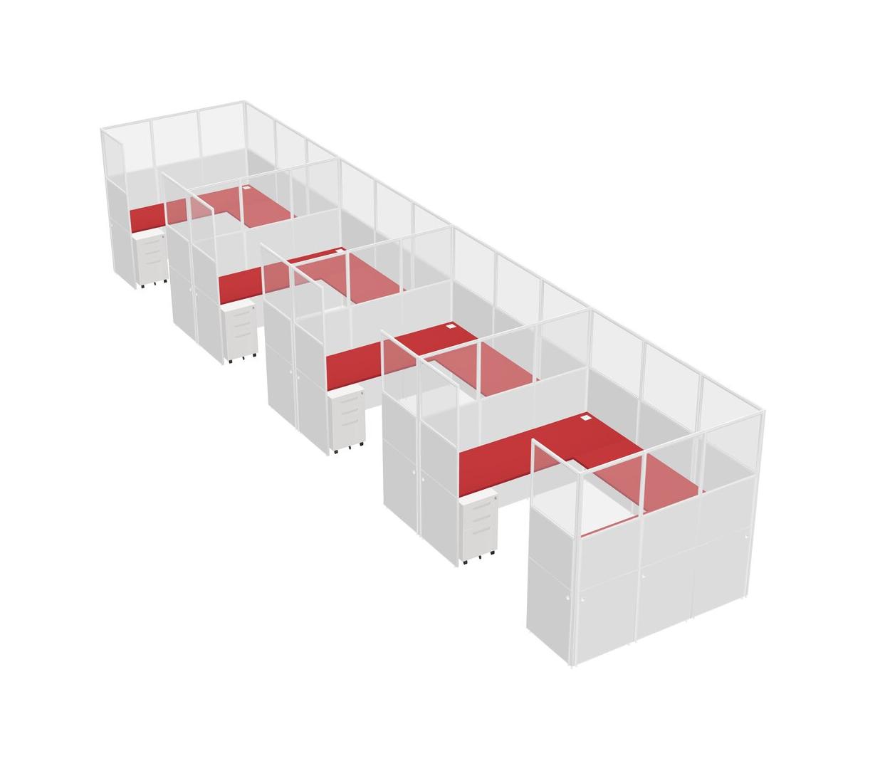 Prism Red U-shaped Panel System For 4 Person + Metal Mobile Drawers For 4 User(s)