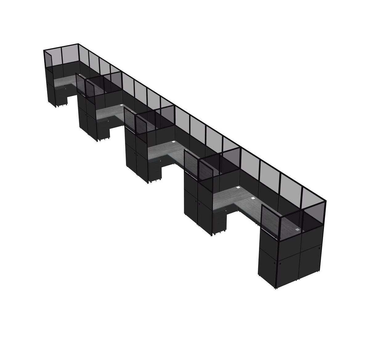 Grey U-shaped Panel System For 4 Person + Metal Mobile Drawers For 4 User(s)