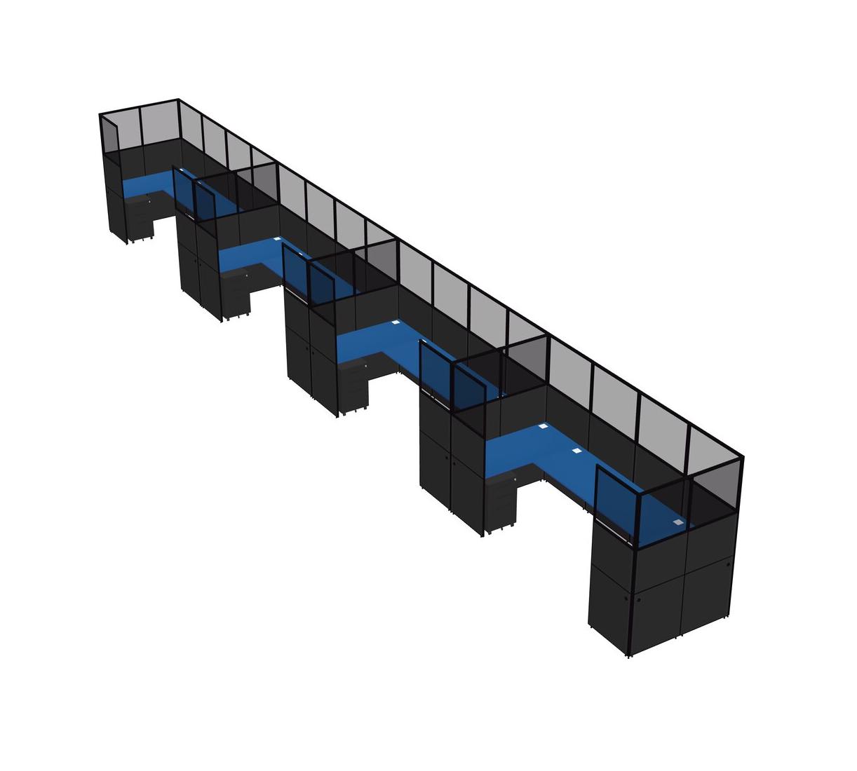 Prism Blue U-shaped Panel System For 4 Person + Metal Mobile Drawers For 4 User(s)