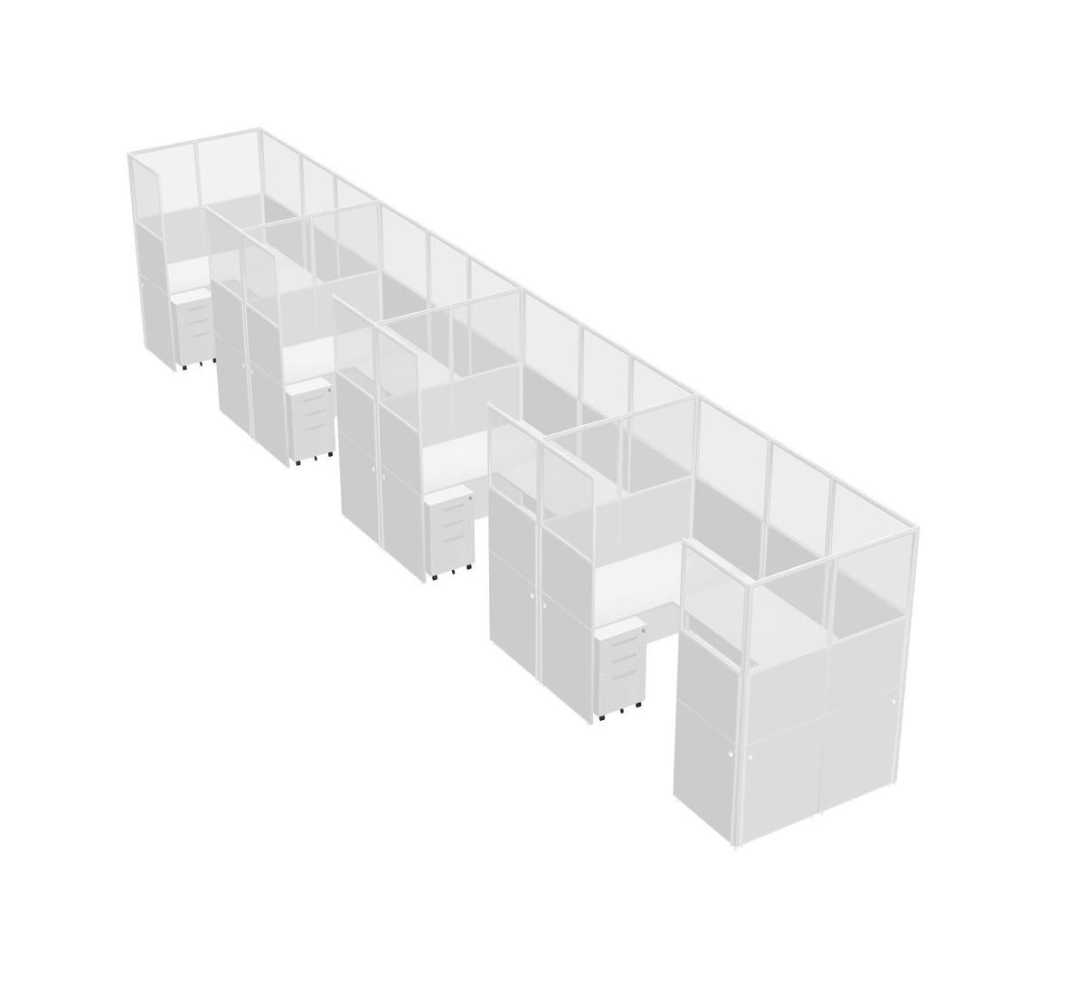 White U-shaped Panel System For 4 Person + Metal Mobile Drawers For 4 User(s)