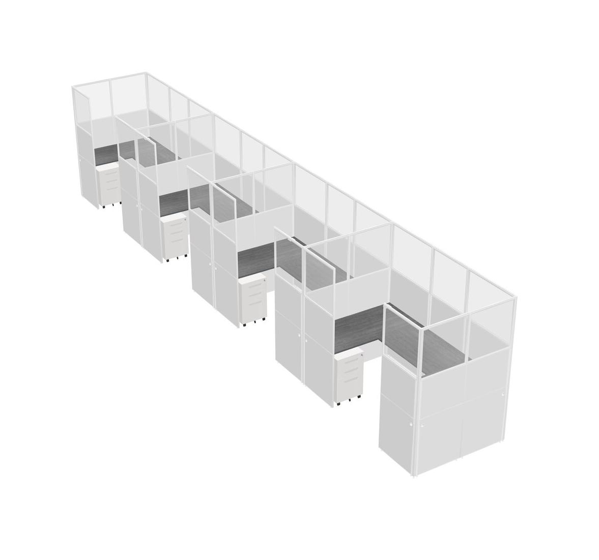 Grey U-shaped Panel System For 4 Person + Metal Mobile Drawers For 4 User(s)