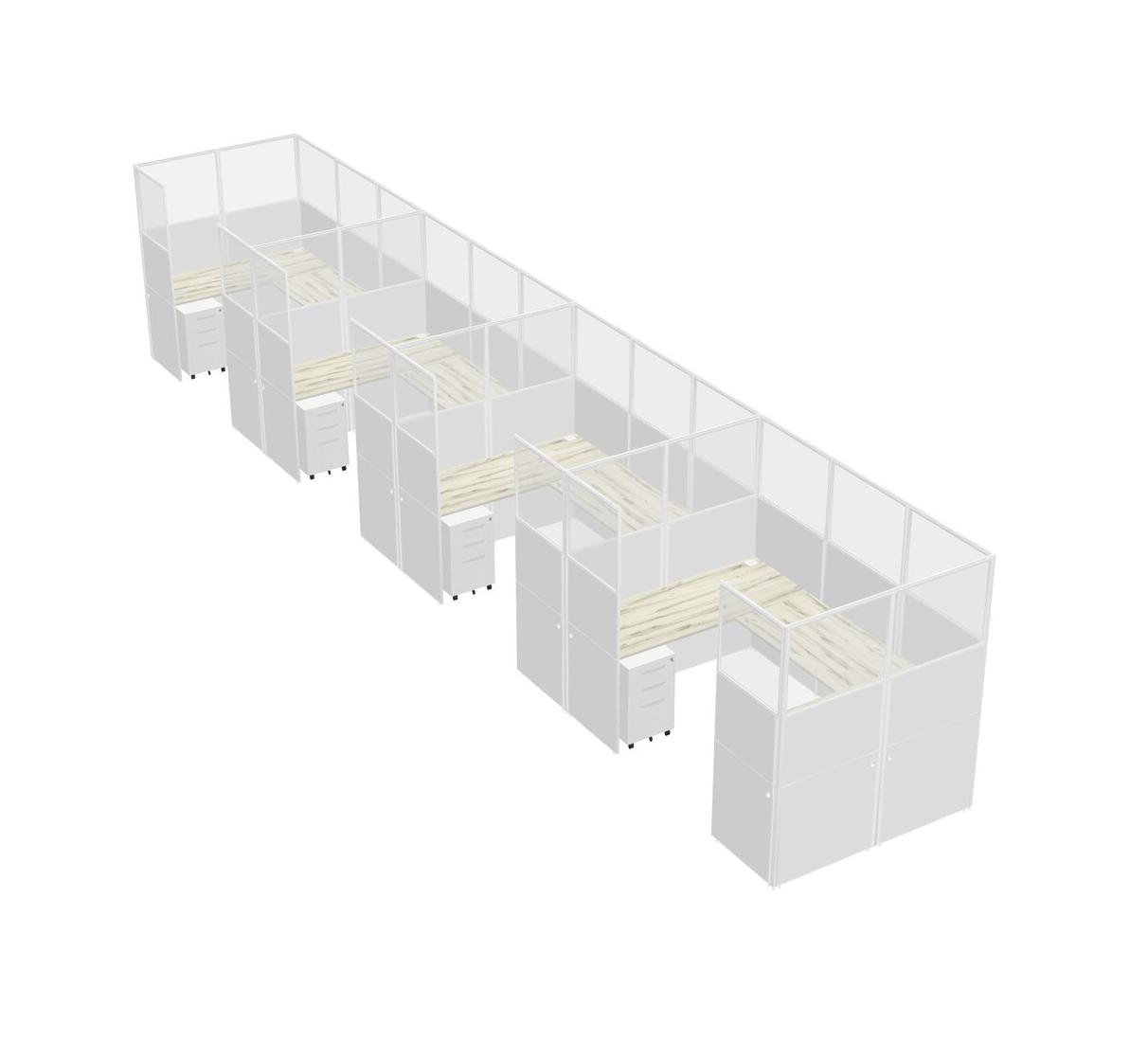 Heinne Holz U-shaped Panel System For 4 Person + Metal Mobile Drawers For 4 User(s)