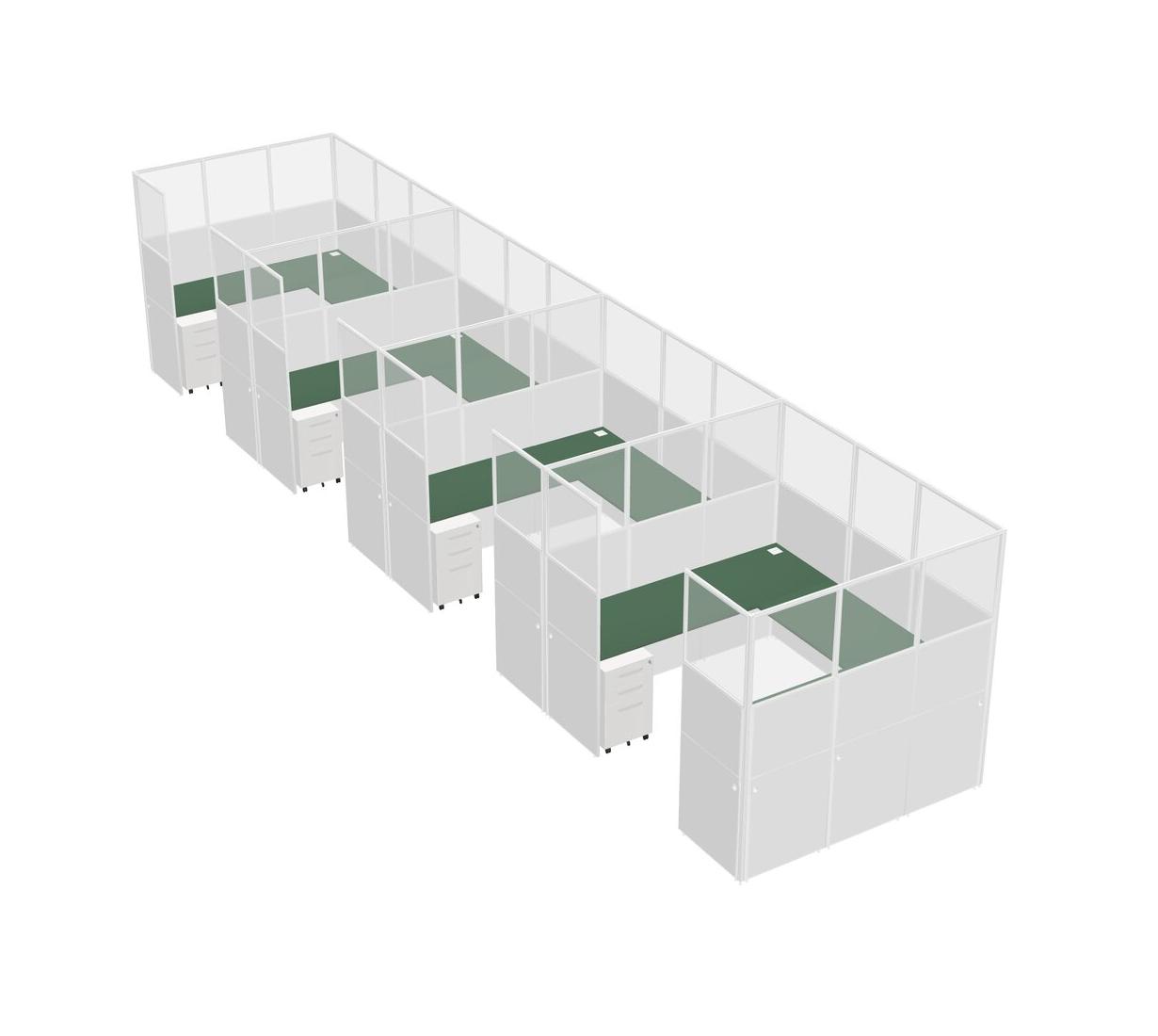 Green U-shaped Panel System For 4 Person + Metal Mobile Drawers For 4 User(s)