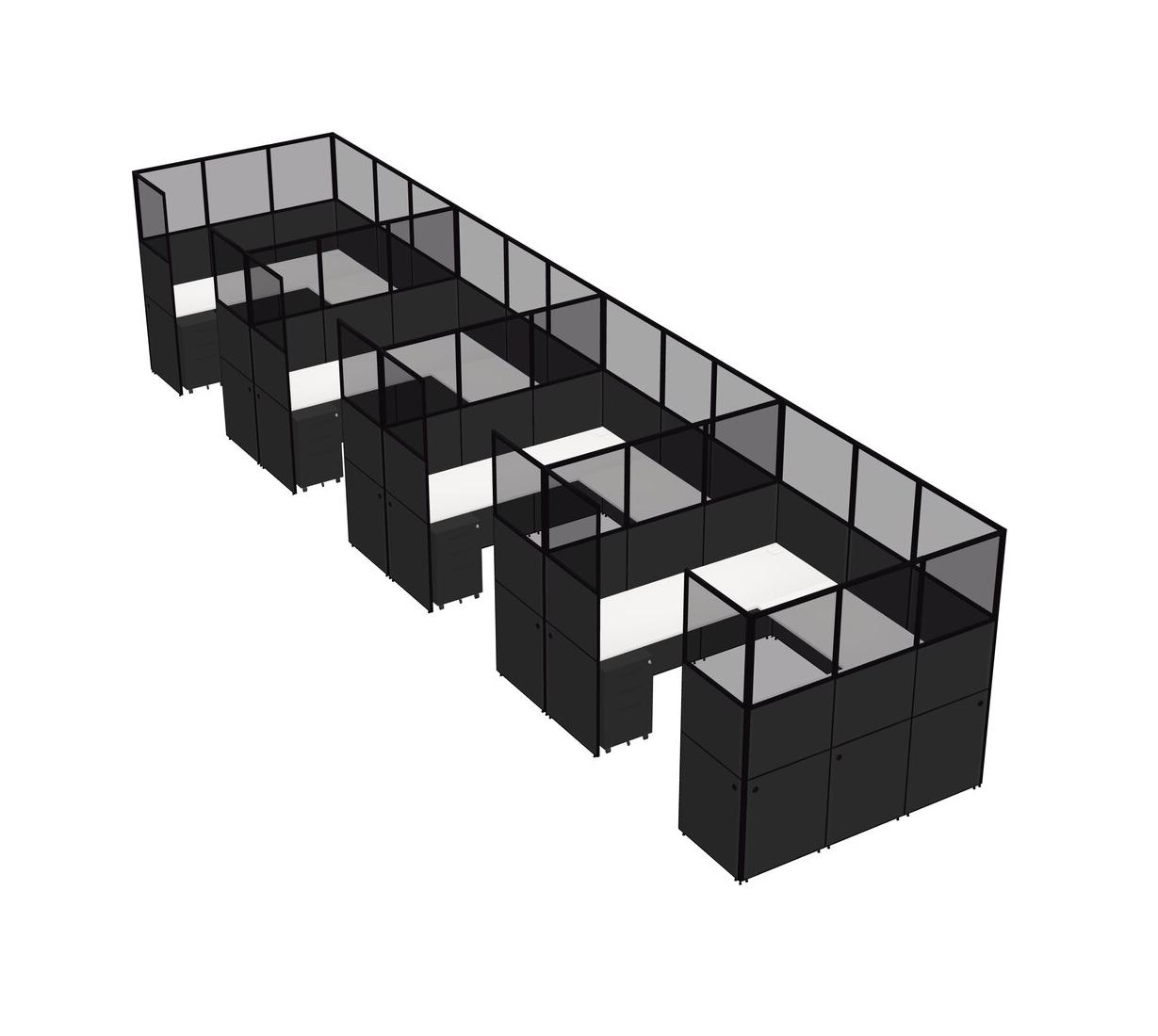 White U-shaped Panel System For 4 Person + Metal Mobile Drawers For 4 User(s)
