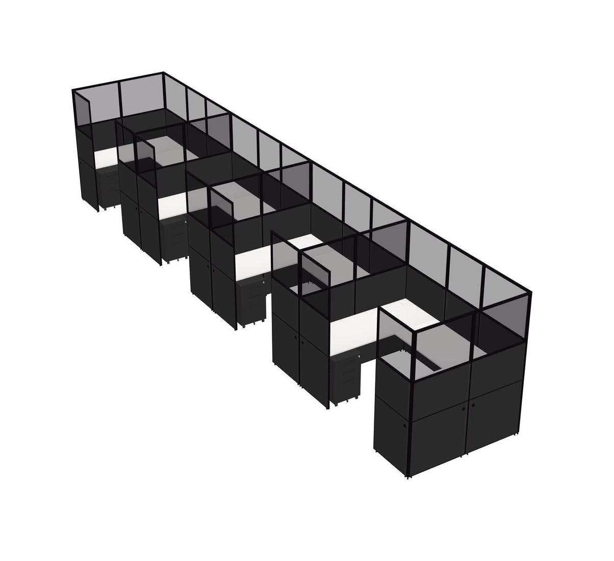 White U-shaped Panel System For 4 Person + Metal Mobile Drawers For 4 User(s)
