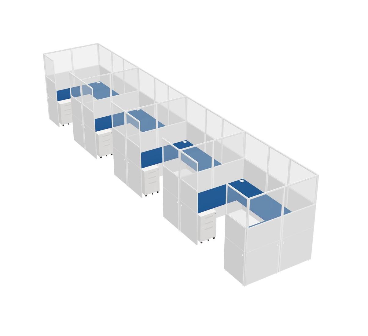 Prism Blue U-shaped Panel System For 4 Person + Metal Mobile Drawers For 4 User(s)