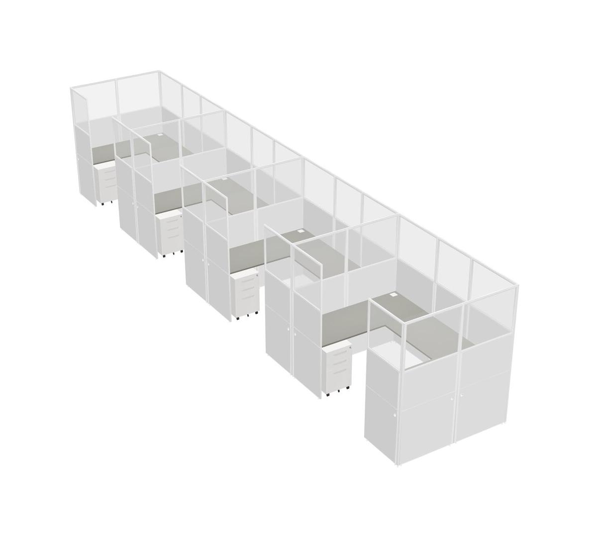 Grey Shadows U-shaped Panel System For 4 Person + Metal Mobile Drawers For 4 User(s)