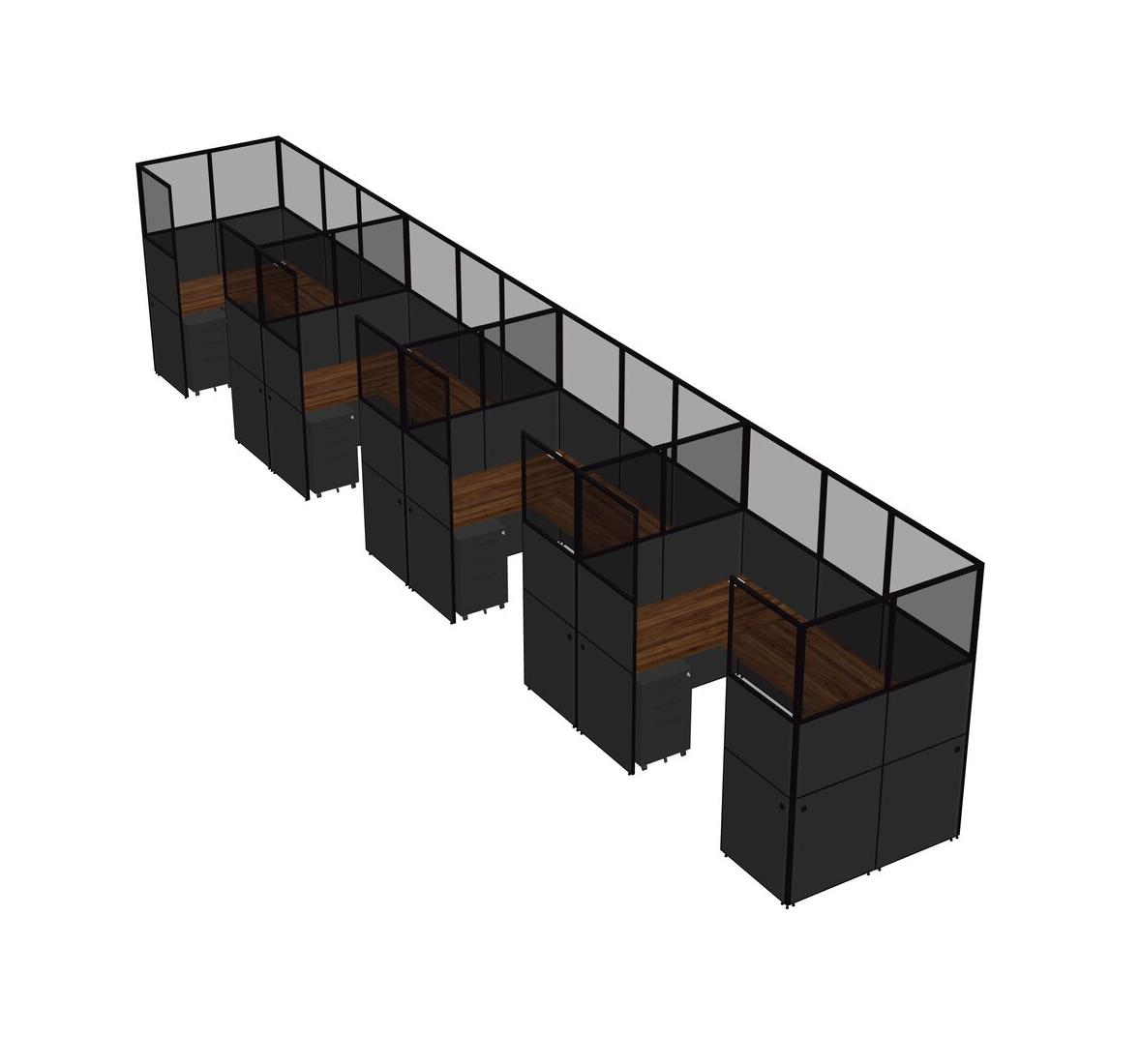 Columbia Walnut U-shaped Panel System For 4 Person + Metal Mobile Drawers For 4 User(s)