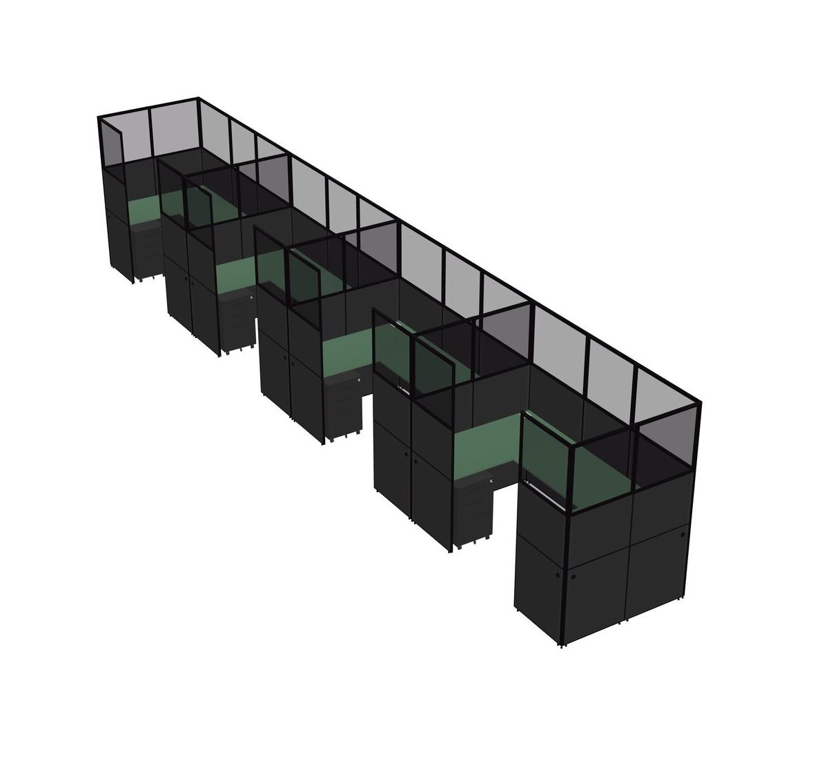 Green U-shaped Panel System For 4 Person + Metal Mobile Drawers For 4 User(s)
