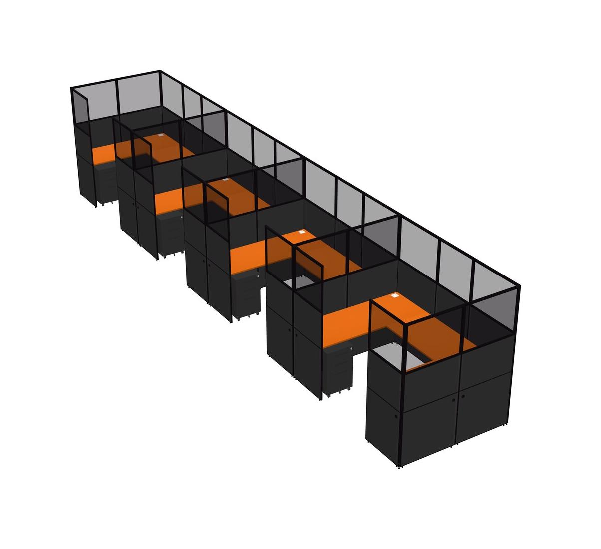 Orange U-shaped Panel System For 4 Person + Metal Mobile Drawers For 4 User(s)