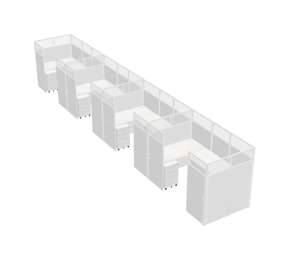 White U-shaped Panel System For 4 Person + Metal Mobile Drawers For 4 User(s)
