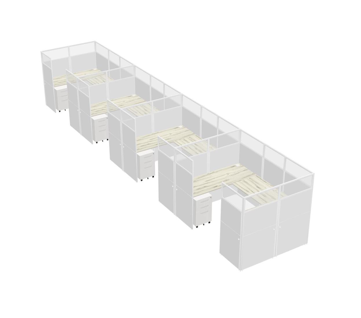 Heinne Holz U-shaped Panel System For 4 Person + Metal Mobile Drawers For 4 User(s)
