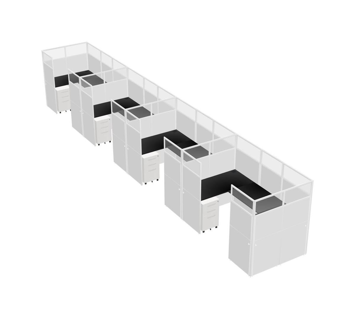 Black U-shaped Panel System For 4 Person + Metal Mobile Drawers For 4 User(s)
