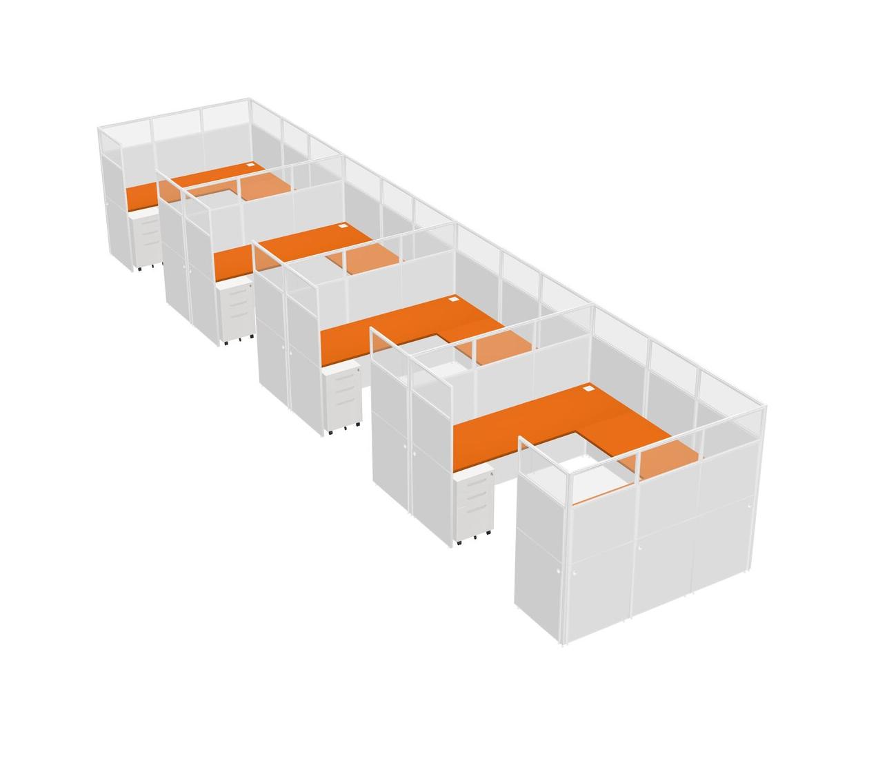 Orange U-shaped Panel System For 4 Person + Metal Mobile Drawers For 4 User(s)