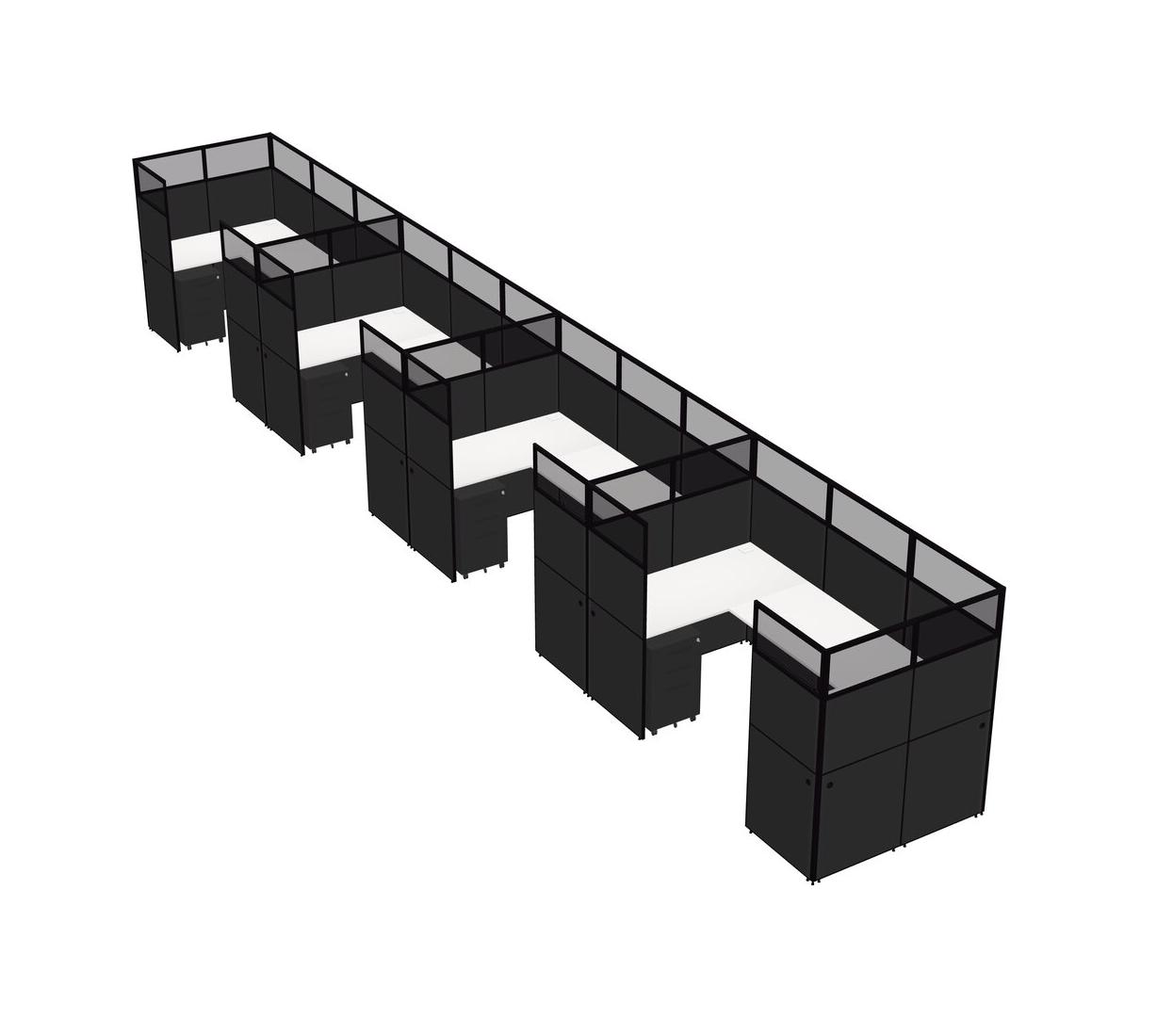 White U-shaped Panel System For 4 Person + Metal Mobile Drawers For 4 User(s)