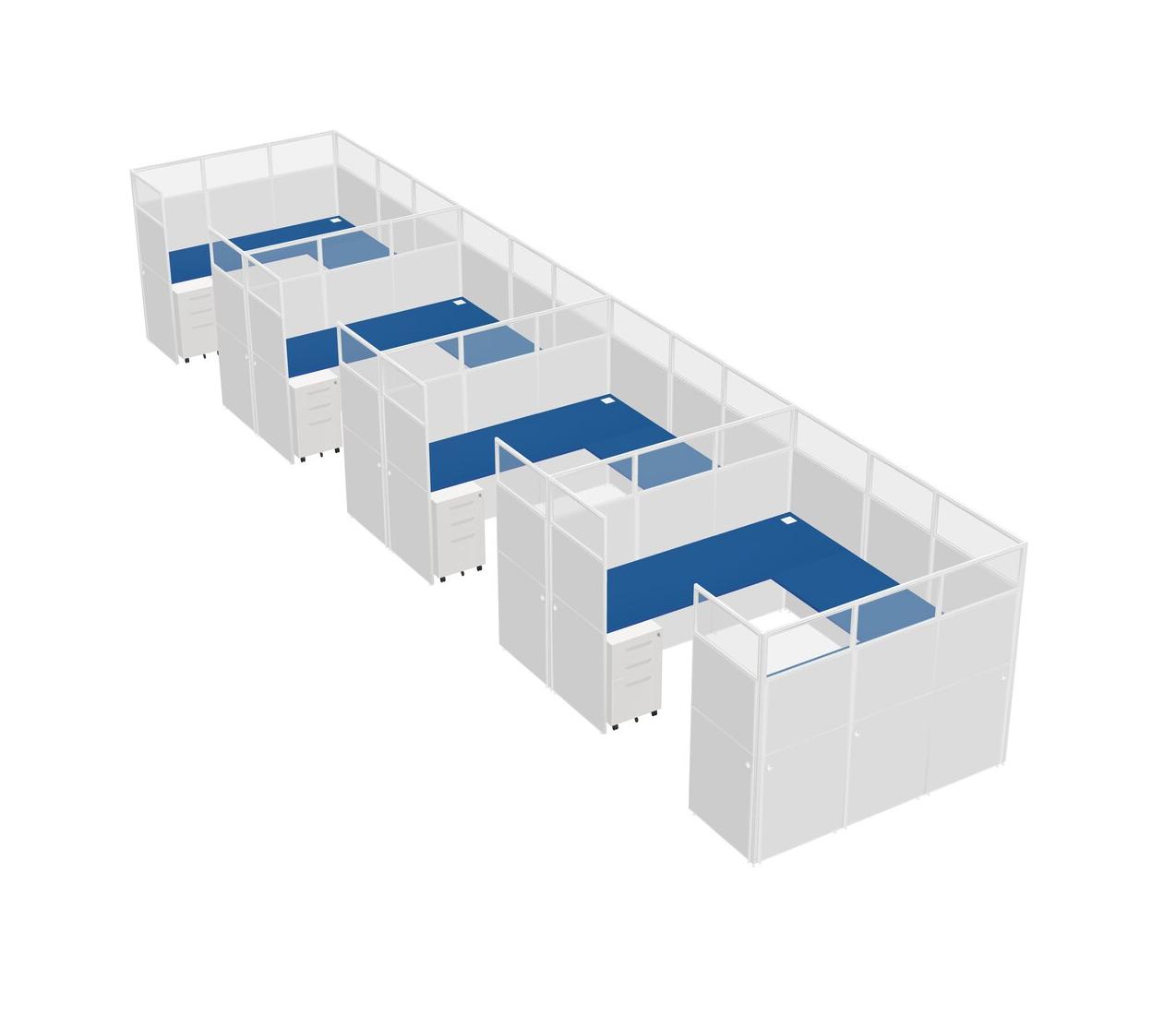 Prism Blue U-shaped Panel System For 4 Person + Metal Mobile Drawers For 4 User(s)