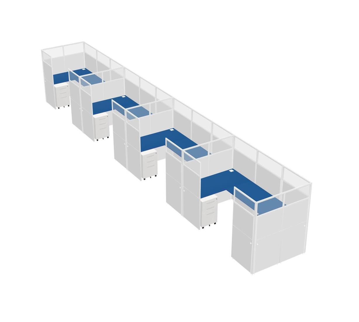 Prism Blue U-shaped Panel System For 4 Person + Metal Mobile Drawers For 4 User(s)