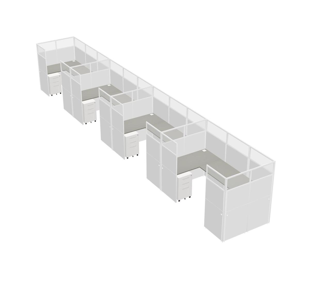 Grey Shadows U-shaped Panel System For 4 Person + Metal Mobile Drawers For 4 User(s)